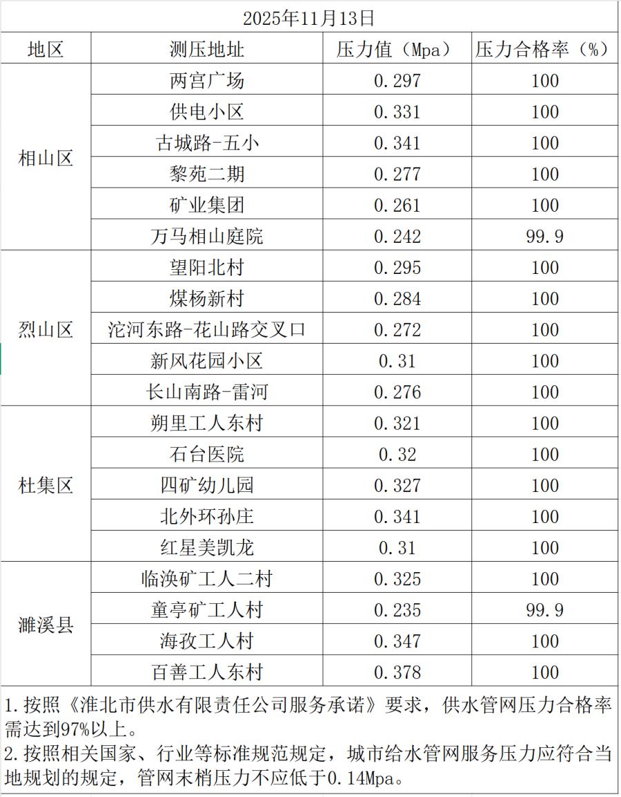 2025年11月13日水壓抽測公示